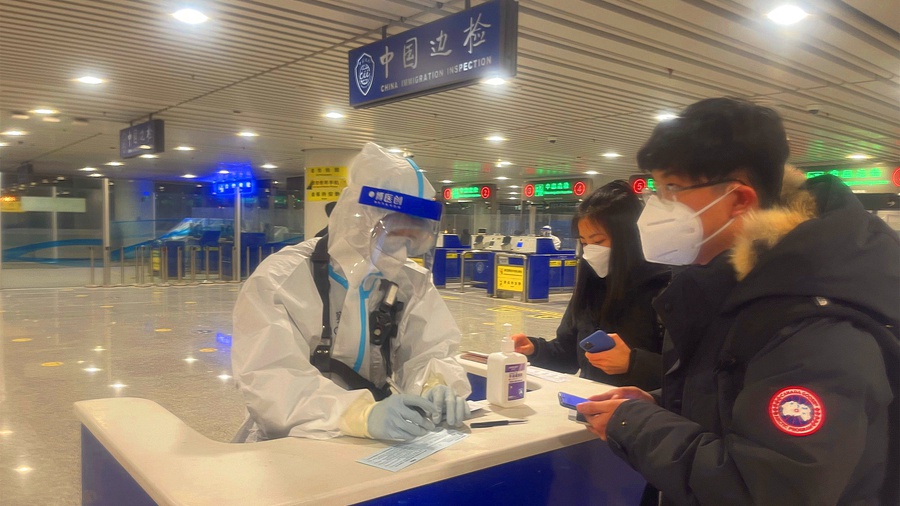 據(jù)了解,在高強度的勤務(wù)工作中,執(zhí)勤民警們在做好防疫工作的同時,嚴(yán)格規(guī)范查驗出入境人員證件。不同國家(地區(qū))各類出入境證件的防偽標(biāo)識都不盡相同,在穿著防護裝備的情況下短時間內(nèi)能夠辨別真?zhèn)谓o執(zhí)勤民警更增加了難度。看似正常的護照證件,在民警的火眼金睛下總能“原形畢露”。2021年,陜西邊檢總站共查獲違法違規(guī)人員66人次,網(wǎng)上在逃人員9人,查獲7起非法出入境案件,有效阻斷了不法分子潛入潛出渠道,有力維護了西安口岸的安全穩(wěn)定。