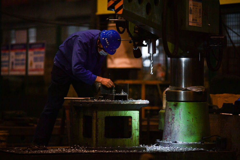 1月25日,工人在中鐵長安重工有限公司西安閻良生產基地加工零部件。