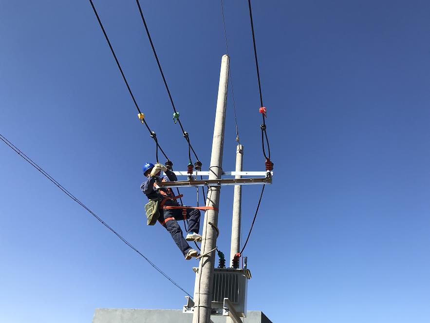 在數米高的電桿上,記者看見檢修人員不畏嚴寒,明確分工,各司其職,一絲不茍地開展檢修、更換等工作,整個現場忙而有序。