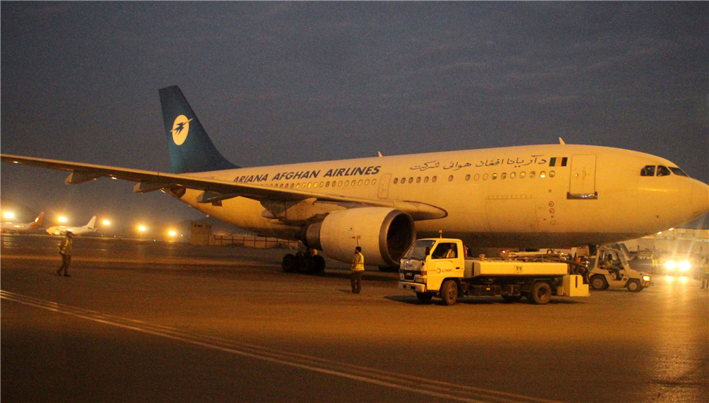 2021年9月29日,載有中國政府首批對(duì)阿富汗緊急人道主義援助物資的飛機(jī)抵達(dá)阿富汗首都喀布爾國際機(jī)場。新華社發(fā)(塞夫拉赫曼·薩菲攝)