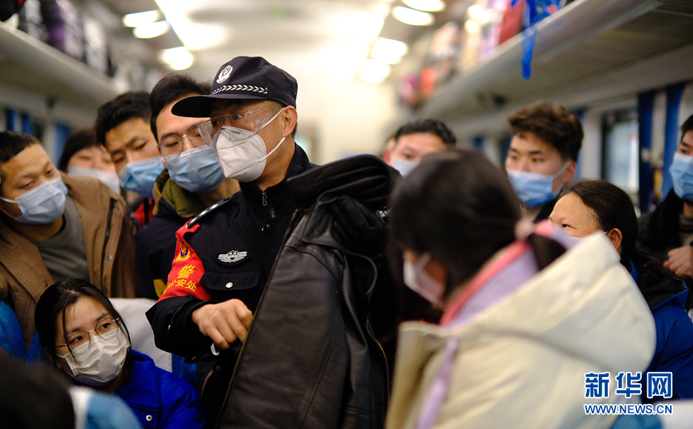 乘警蔣大兵解答乘客疑問。新華網發 賀瑞明攝