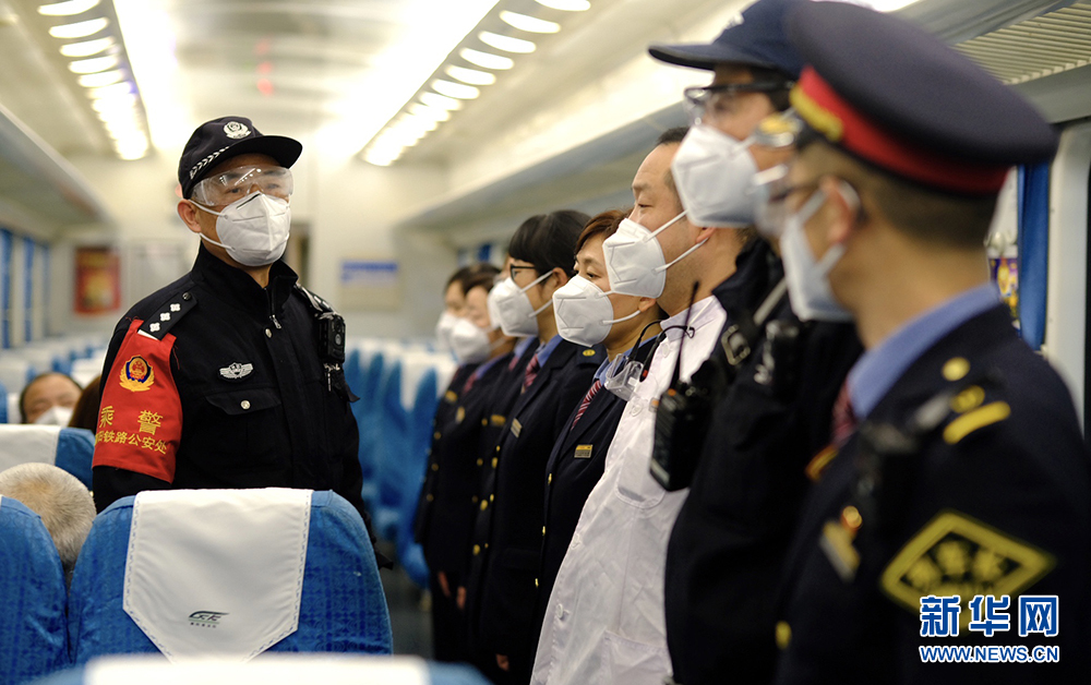 乘警蔣大兵引導乘客有序登車。新華網發 賀瑞明攝