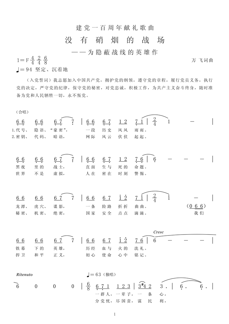 慶祝建黨百年獲獎歌曲作品選集——《沒有硝煙的戰場》音頻。