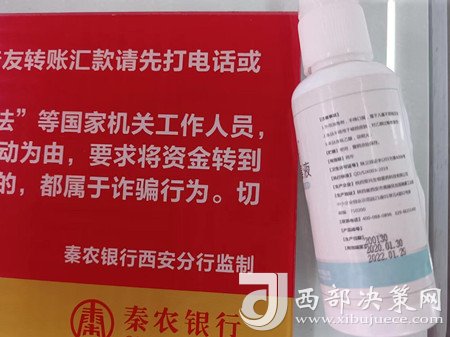 決策熱線|武先生:4月26日上午前往秦農銀行長安區支行辦理業務,營業大廳共有9個業務窗口,只有3個正常辦理個人業務,致使多數人在大廳內排隊等候,隊伍已排到了營業廳門口。辦理銀行卡用了近2個小時,銀行業務效率低。隨后發現窗口擺放的防疫消毒液已過效期(生產日期:2020.1.30,有效期至:2022.1.29),防疫物資疏于管理。