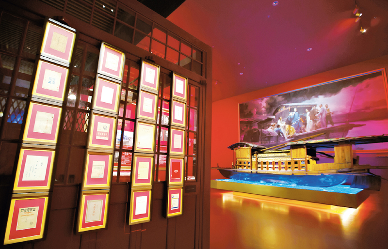 圖為中國共產黨歷史展覽館中嘉興南湖紅船場景展出。 劉新武/攝