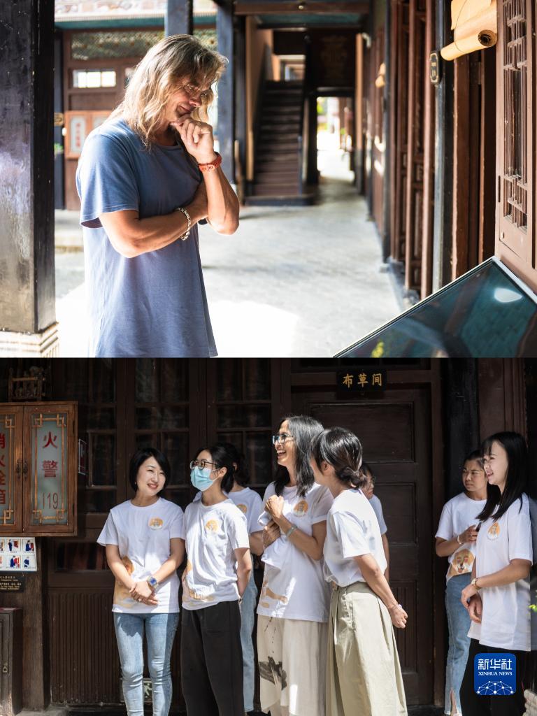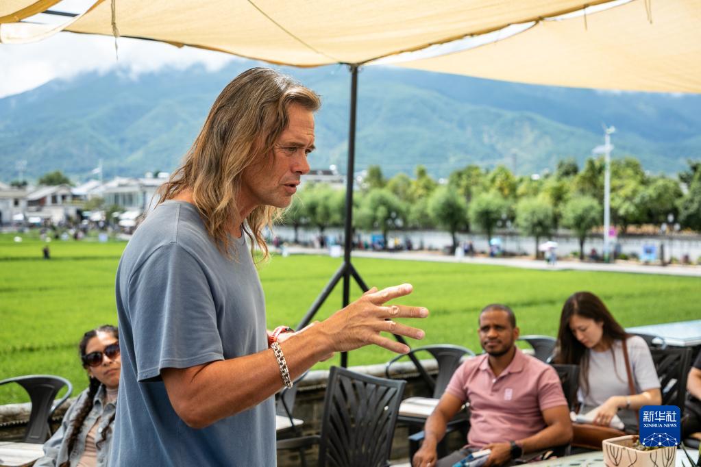 8月27日,林登在喜洲古鎮喜林苑向外國訪客介紹當地文化。新華社記者 曹夢瑤 攝