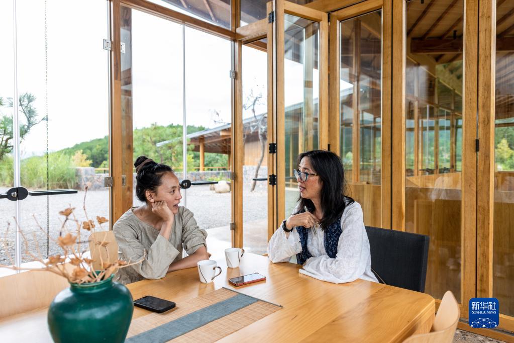 8月31日,林登的妻子瑾妮(右)向當地舞蹈家董繼蘭學習白族話。新華社記者 曹夢瑤 攝