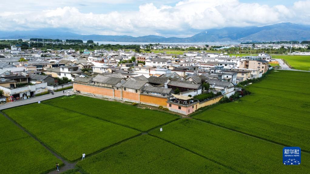 這是8月27日拍攝的云南省喜洲古鎮,近處為喜林苑(無人機照片)。新華社記者 曹夢瑤 攝