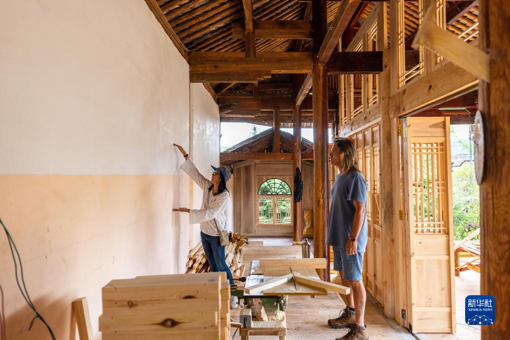 8月31日,林登和妻子瑾妮在沙溪鎮石龍村討論鄉村圖書館的設計。新華社記者 曹夢瑤 攝