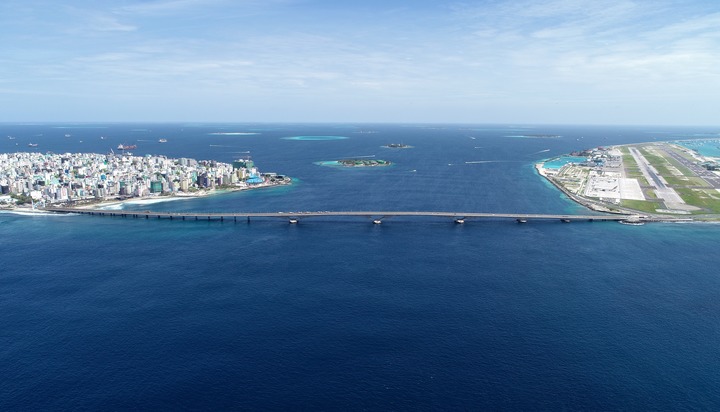 這是在馬爾代夫航拍的連接首都馬累和機場島的中馬友誼大橋(2019年8月30日攝)。新華社發(王明亮 攝)