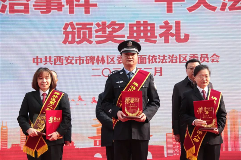 2月14日上午,西安市碑林區委全面依法治區委員會主辦的碑林區第二屆“十大法治事件”“十大法治人物”頒獎典禮在鐘樓廣場前隆重舉行。西安市公安局碑林分局成功偵辦的特大網絡賭博案以及公安碑林分局太白路派出所所長丁保健分別榮獲“十大法治事件”和“十大法治人物”。此外,作為依法治區委員會成員單位,公安碑林分局在現場通過設置、案例解讀、現場互動解答的方式進行了反詐以及普法宣傳活動。