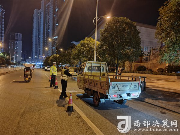 西部決策網訊 為扎實推動“控大歸零”戰訓行動深入開展,最大限度整合警力資源,11月15日晚,漢中市西鄉縣公安局交警大隊組織古城、茶鎮中隊在城區集中開展了夜查整治聯合行動,連續查處無證、飲酒駕駛等嚴重交通違法行為。
