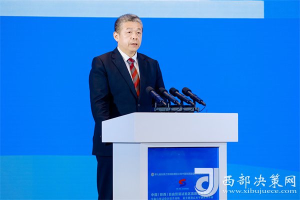 楊正偉在致辭中介紹了十年來全國(guó)自貿(mào)試驗(yàn)區(qū)的建設(shè)成效,并對(duì)陜西自貿(mào)試驗(yàn)區(qū)揭牌以來的建設(shè)成績(jī)給予了充分肯定。他說,陜西自貿(mào)試驗(yàn)區(qū)設(shè)立以來,圍繞中央賦予的目標(biāo)定位,充分發(fā)揮內(nèi)陸開放前沿優(yōu)勢(shì),探索了一大批改革創(chuàng)新試點(diǎn),36項(xiàng)制度創(chuàng)新成果在全國(guó)復(fù)制推廣,電子信息、臨空臨港、現(xiàn)代農(nóng)業(yè)等產(chǎn)業(yè)蓬勃發(fā)展,改革開放綜合試驗(yàn)平臺(tái)的作用日益顯現(xiàn)。未來,商務(wù)部將與有關(guān)地方和部門一道,深入推進(jìn)制度型開放、加強(qiáng)改革整體謀劃和系統(tǒng)集成、持續(xù)開展差別化探索,更好發(fā)揮自貿(mào)試驗(yàn)區(qū)示范作用,努力為推進(jìn)中國(guó)式現(xiàn)代化作出更大貢獻(xiàn)。并將支持陜西自貿(mào)試驗(yàn)區(qū)在西部地區(qū)繼續(xù)發(fā)揮好示范引領(lǐng)作用,著力打造內(nèi)陸改革開放高地。