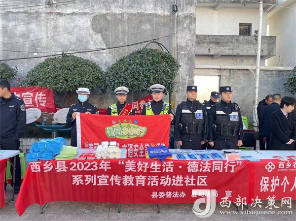 西部決策網訊 11月17日,漢中市西鄉縣公安局交警大隊參加了縣民政局在東渡社區組織開展的“美好生活.德法同行”主題宣傳教育活動。
