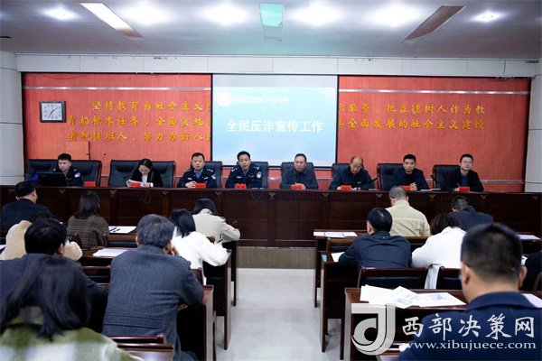 西部決策網訊11月20日晚,勉縣公安局武侯派出所聯合反詐中心深入武侯中學組織開展了一場反詐宣傳培訓活動。局黨委委員、刑警大隊大隊長楊曉出席活動并講話,該校500余名教職員工參與培訓。