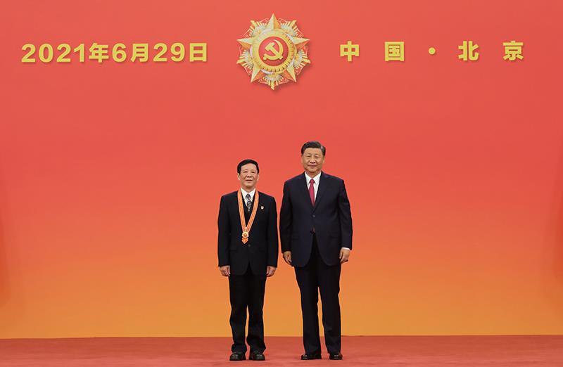△2021年6月29日,習近平總書記向“七一勛章”獲得者艾愛國頒授勛章。