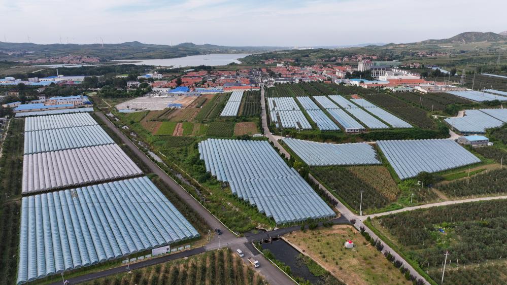 9月21日無人機航拍的山東省招遠市大戶陳家村葡萄種植園。新華社記者 徐速繪 攝