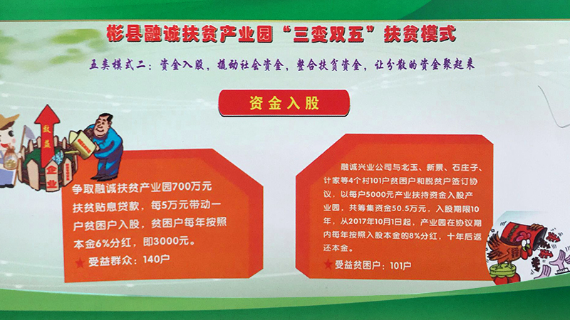彬州融誠集團公司按照“企業主導、政府搭臺、群眾參與、社會共建”的思路,圍繞主導產業,緊盯市場需求和脫貧政策動向, 在外出考察學習的基礎上,借鑒貴州省六盤水市“三變”改革的成功經驗,以“資源變資產、資金變股金、農民變股東”三變改革為基礎, 探索總結出了符合融誠實際的“三變雙五”新模式。
