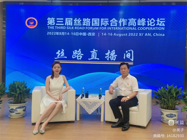 會前,秦晉集團董事長楊百章接受了第三屆絲路國際合作高峰論壇媒體專訪。(圖/文 英子)